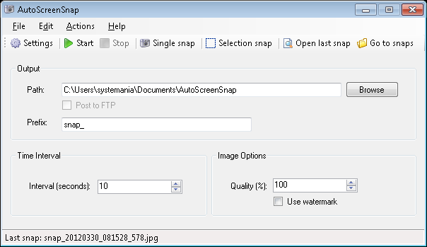 Take snapshots of your screen with a single click / key combination or auto-snap-ically at specific intervals.