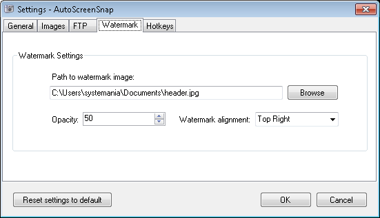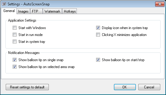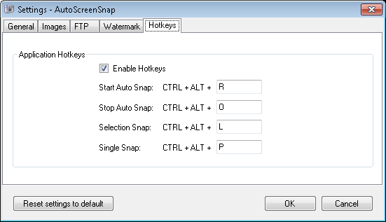Specify your own hot keys to take a single snap or to start, stop or select a snap in progress.
